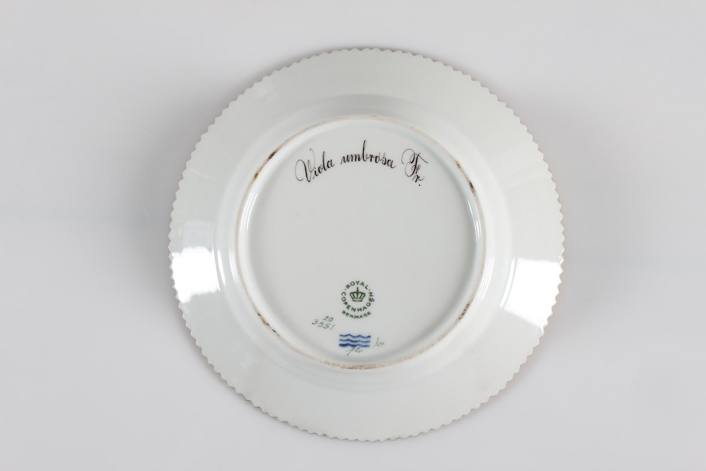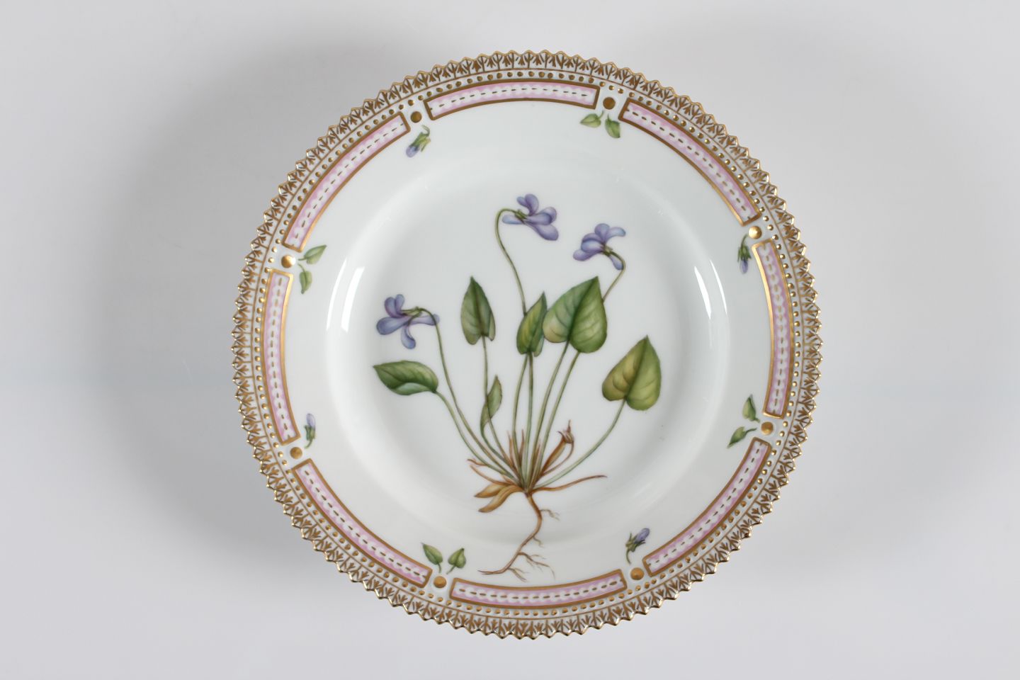 Royal Copenhagen Flora Danica Large tea plate with serrated rim no 3551 Decorated with flower "Viola umbrosa Fr." Diameter 17 cm Factory 1 without chips or cracks
