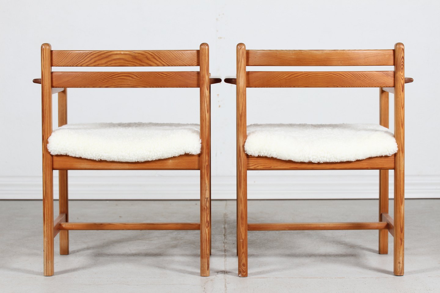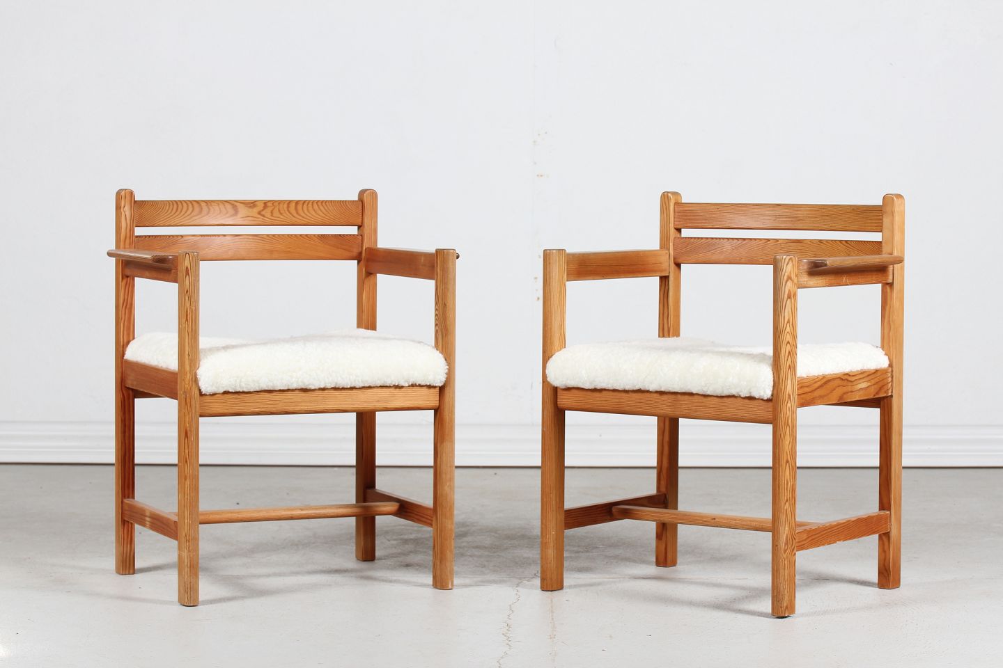 Made of solid pine, seats upholstered
