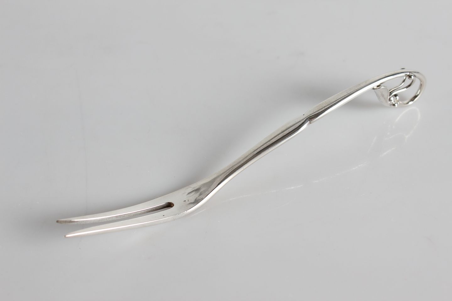 Georg Jensen (1866-1935) Pyntebestik nr. 21 af tre-tårnet sølv 830s Tegnet af Georg Jensen i 1912 Pålægsgaffel med stempel fra 1929 Længde 14 cm Fin stand uden gravering