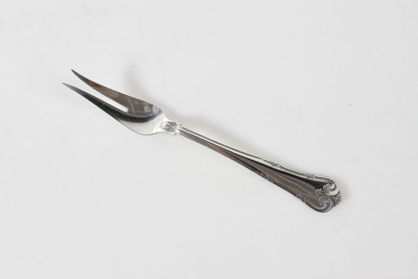 Herregård Sølvbestik Mellemstor kødgaffel Fremstillet af 3 tårnet ægte sølv af C. M. Cohr eller Gense Længde 18,5 cm Fin stand efter almindelig brug uden inskription
