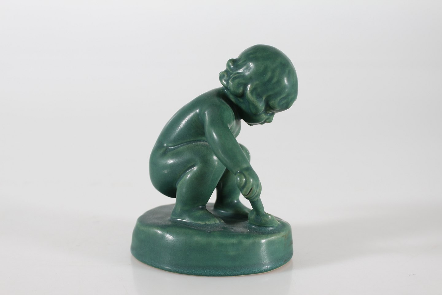 P. Ipsens Enke Figur af pige med skovl nr. 889 arbejdslyst Formgjort af Adda Bonfils (1883-1943) Fremstillet i keramik m/jadegrøn glasur Højde 11 cm Bredde 8 cm Fin stand uden skår eller afslag