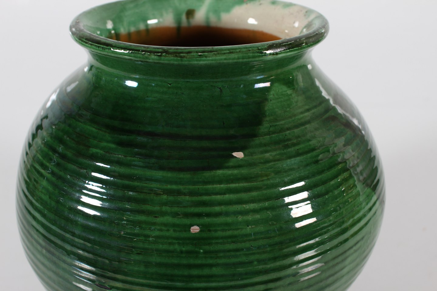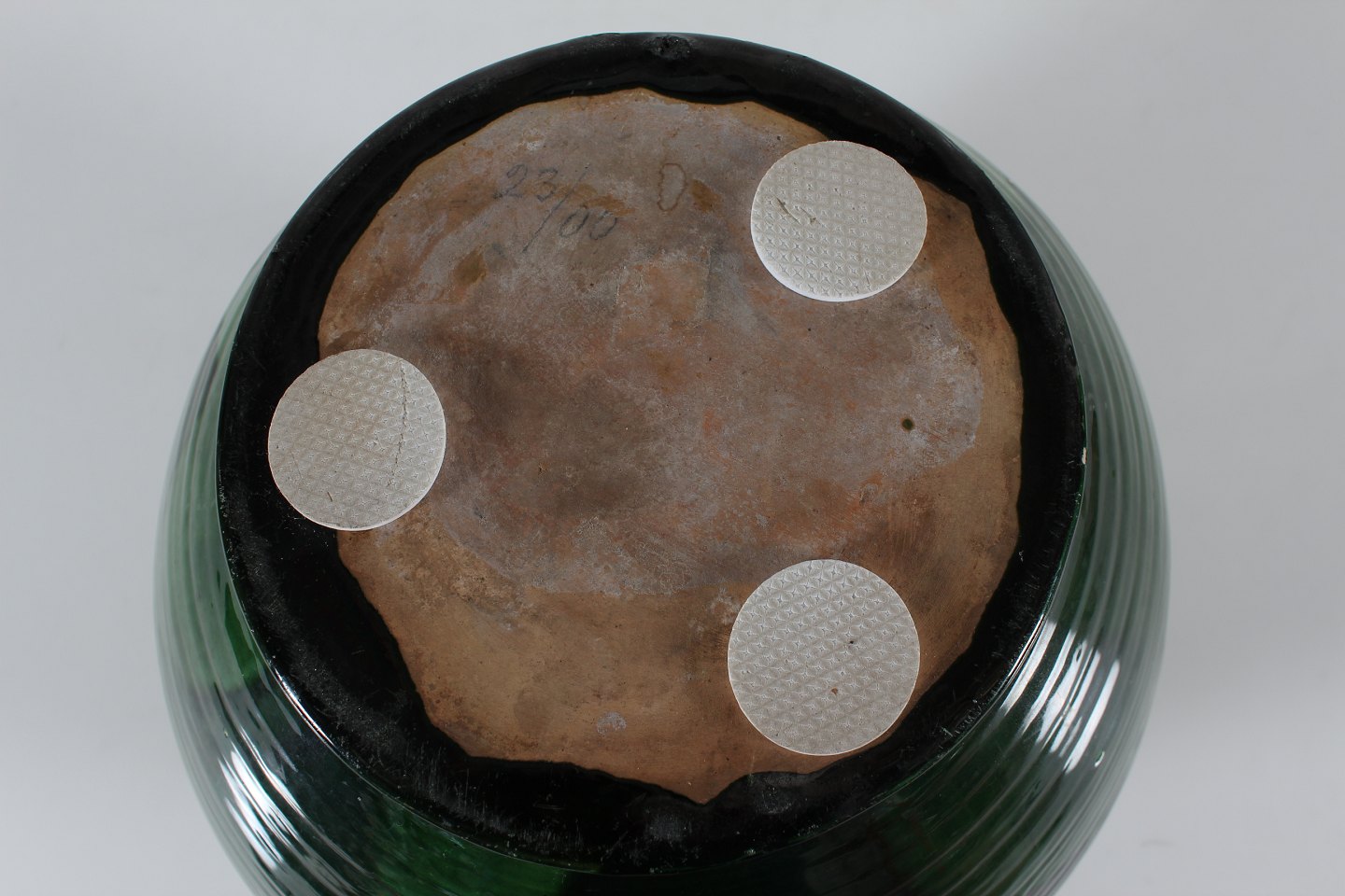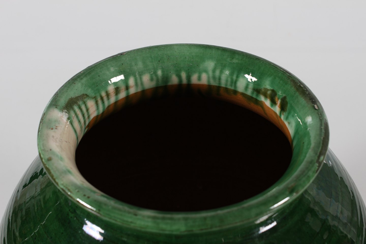 Dansk Keramikker Stor gulvvase med græsgrøn glasur Højde 35 cm Diameter 33 cm Fin stand - se billeder af små afslag