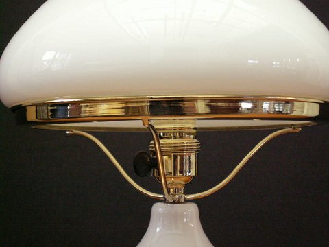 Couple old table lamps with foot made of white ceramics sign. KV - With white opalglass lampshades