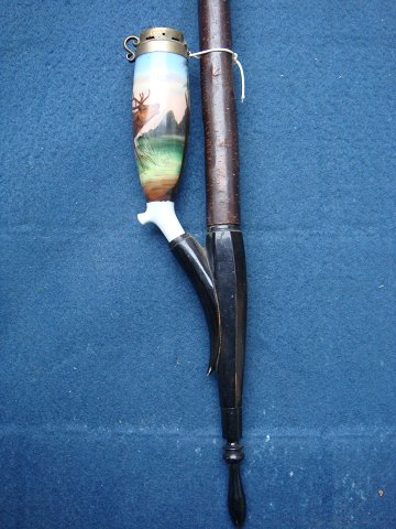Long Pipe soldiers pipe Shaft In carved wood and bone the shank is 7 cp No 163