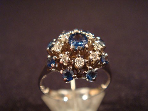 Brillant: 8 x 0,02 ct = 0,16 ct. Safir 8 x 0,02 ct = 0,16 ct