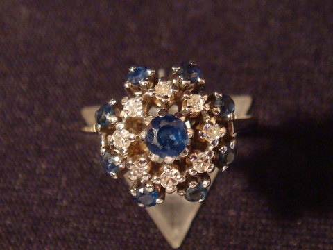 Brillant: 8 x 0,02 ct = 0,16 ct. Safir 8 x 0,02 ct = 0,16 ct