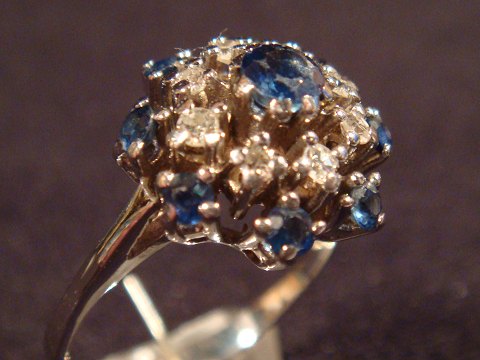 Brilliant: 8 x 0.02 ct = 0.16 ct. Sapphire 8 x .02 ct = .16 ct. sapphire in the middle = 0.15 ct