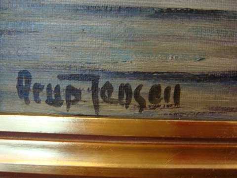 Marine paintings sail ship outside København.Sign. Arup Jensen (born 1906) Height 75 cm frame (without frame H: 58 cm) Width: 63 cm frame. (Without frame B: 45 cm)