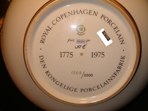 Lovely large porcelain bowl. From the Royal Porcelain Factory. Royal Copenhagen Commemorative Bowl 1775-1975. With painted Maersk Kontainer ship, the Royal Yacht Danebro, Kronborg, School ship Denmark, and more. A really nice Bowl. Rc. No. 1508-2500, is only made 2500 copies. this is number 1508 out of 2500