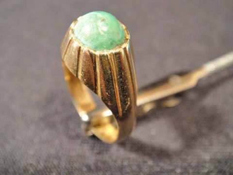 Ring with green turkis.Guld 14k 585 (I Ejnar Jensen Graugaard Åbyhøj 1928-58).