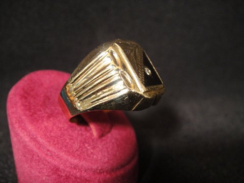 Ring mit Onyx und Zirkon. 14k Gold 585 Ring Größe 63 Dkr. VERKAUFT
