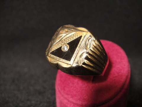Ring med onyx og zirkon. Guld 14k 585 Ringstørelse 63 SOLGT