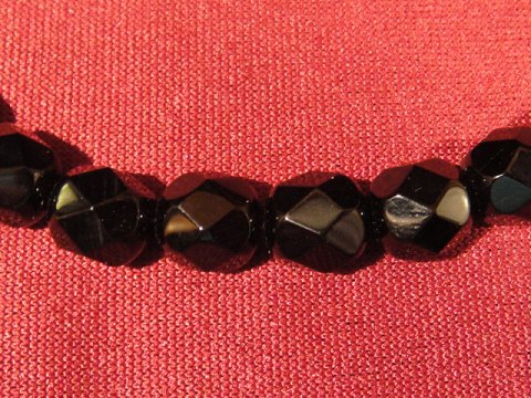 Jet Perlekæde.jet also called uddertiden gagat has a Fari of bbrunkul with a uniform deep black fløjelsagtig farve.Jet was popular as make jewelry because of the dark color and the message end look and is traditonelt used for making rosaries for nuns and monks. Jet has also been called black amber.