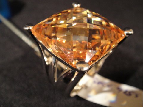 Ring med stor farvet krystal på 2x2 cm.
