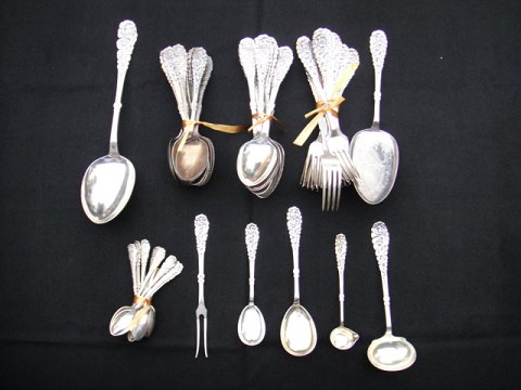 1 stor opøserske, 1 opøserske, 1 Sovseske, 1 kagespade , 1 Sukkerske , 1 Flødeske , 1 pålægs-gaffel.
