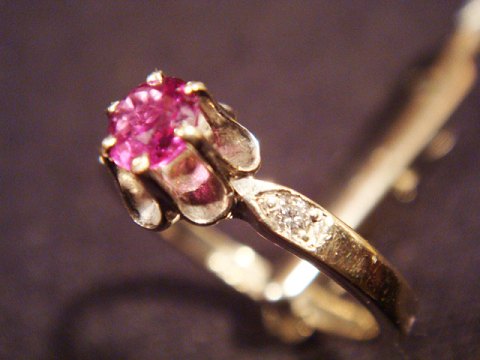 0.20 ct Ruby and two Diamonds Wesselton vvs 2x0, 02 ct in 14k White Gold page 585
