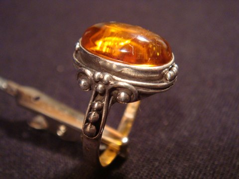 Sølvring med rav. Sølv 925s Ring størrelse 48 pris Dkr. 175,-