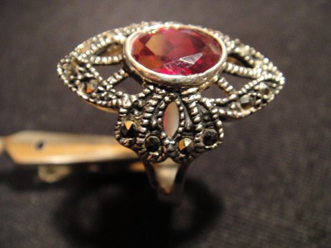 silver ring with a big beautiful ruby. 925 sterling silver Ring size 57 Price $: 240, - sold