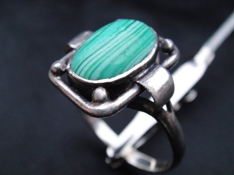 Nouveau Ring with malachite. Silver 830s Ring size. 67 Price. USD 139,- item number 164365