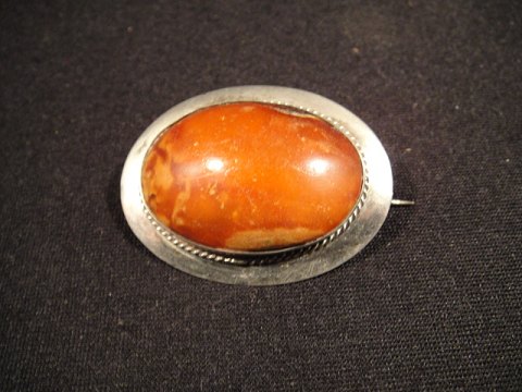 Broche med rav. Sølv Længde: 4,5 cm , Bredde: 3,5 cm Kontakt for pris
