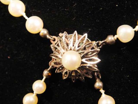 Pearl necklace Double-in process with 14k hvidguldlås with pearl in the middle with nice round exquisite 6 mm beads.
