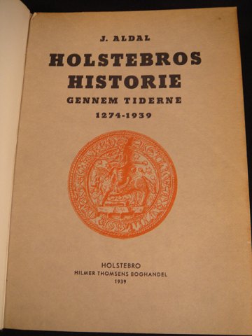 ALDAL, J.: Holstebros historie gennem tiderne 1274-1939. Hilmer Thomsens boghandel, Holstebro 1939. (10), 712, (1) s