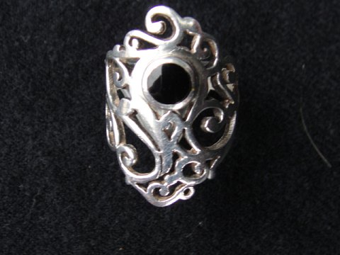 Silver ring with black onyx.