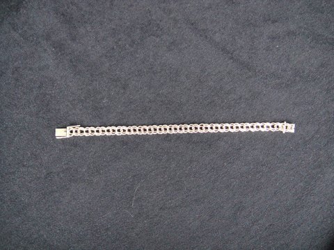 俾斯麦手链。 14K金585 长度。 20厘米宽度:8毫米 重量:13.5克。 制造商的标志:锯(细环工作斯坎迪亚 - 1953年霍恩拜克,至1982年) 售价USD。 639 ,-