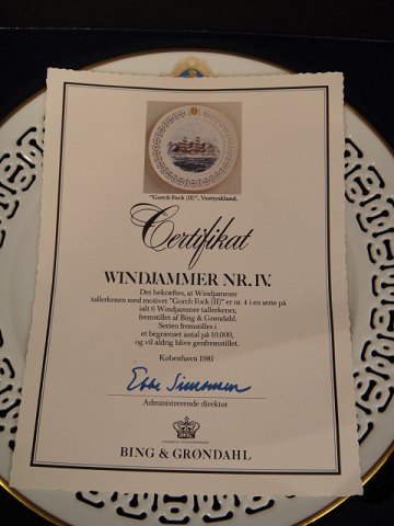 Scene Full-Rigged "Gorch Fock (II)", West Germany. is # 4 in a series of 6 pcs. windjammer Plates / plate. No. 8869/633 Manufactured by Bing & Grondahl.