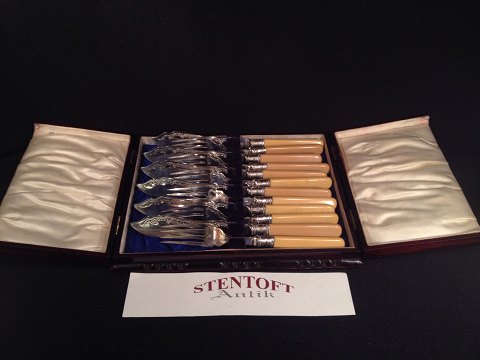 6 stk. Knive Længde: 21,5 cm og 6 stk. gafler Længde: 18,5 cm med Dekoration.