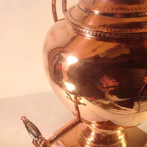 On square feet with round copper feeder. Smooth body with sisaleringer handles in copper.