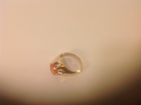 Gold ring with a brilliant-cut fire opal.