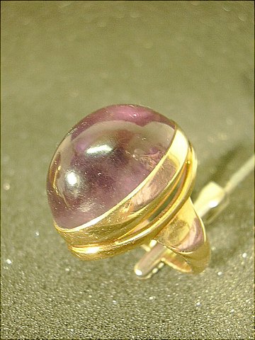 med stor carbonslebet amatyst L: 2,5 cm B:1,6 cm Højde: 1,5 cm