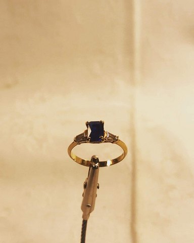 En 18 k guld ring med store blå safir og to store hvid safir på sidener