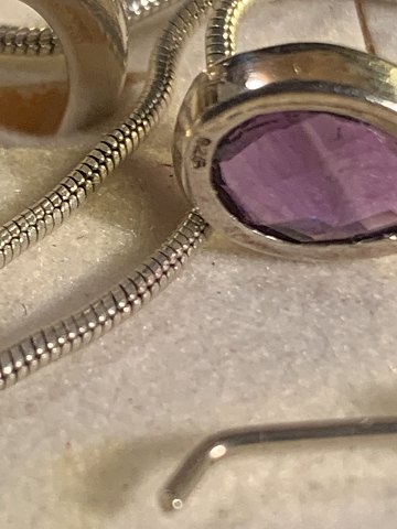Sæt i sølv 925 Halskæder sammen med vedhæng og ørering og en ringe. Sten er Amtuste
