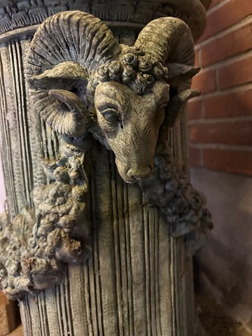 Sokkel flankeret med blomster ranker og Bukkehoveder.