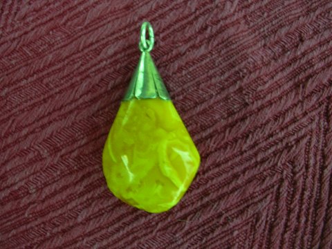 Rav vedhæng med sølv montering samt sølvkæde.