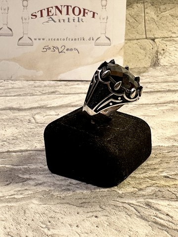 Large unique silver rings, large black stones, 12 stones on the back side. Ring stamps 925 s, size 65