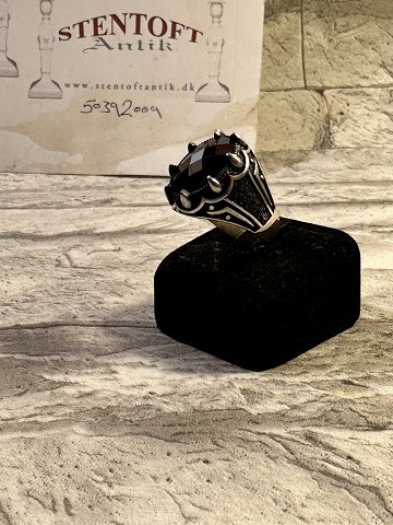 Store unik sølv ringe ,store sort sten , 12 små sten på Bagge siden .