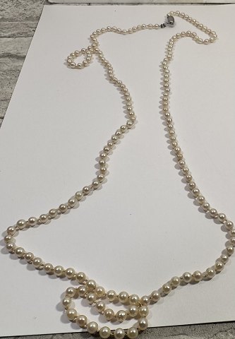 Real Pearl chain with gold lock in 14k White gold. L 46 cm Nice condition