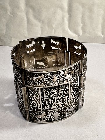 Antique Peruvian sterling silver, front plate bracelet L 20 cm W 5.5 cm nice and in good condition