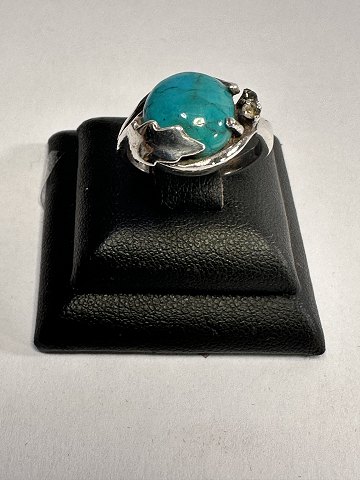 Vintage sterling silver finger ring with genuine turquoise size 56 A round turquoise stone in nice condition
