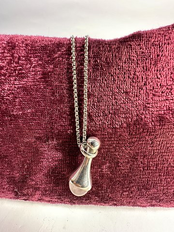Necklace with pendant model Droplet. 925 sterling silver. adorned with rose quartz. Design no. 453. Length: 45 cm. nice and well maintained condition.
