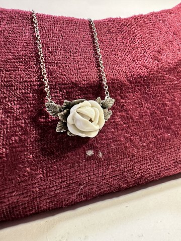 Sterling silver 925s. Vintage silver Necklace with porcelain Rose.