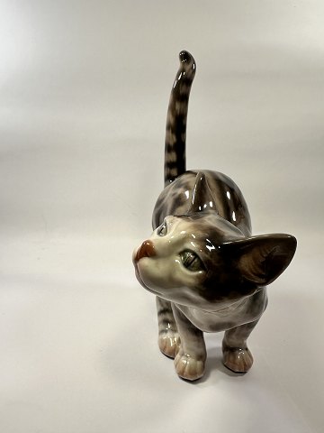 Dahl Jensen figur , grå stribet kat , model 1108 .