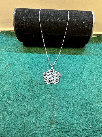 Sterling sølv halskæde samt med stort vedhænge udforme blomster ,