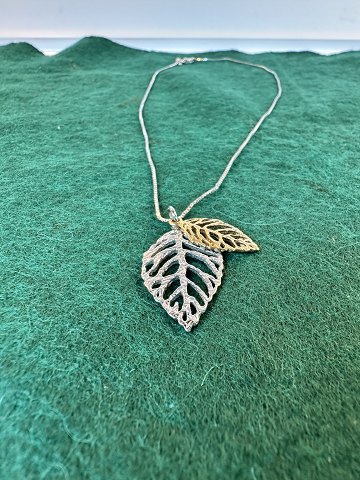 Sterling silver necklace with pendant, silver 925s gold-plated pendant, length 40 cm, pendant is leaf-shaped.