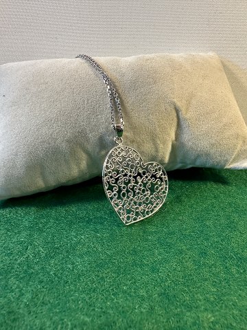 Stort hjerte , halskæde samt med hjerte vedhænge i sterling sølv 925 s