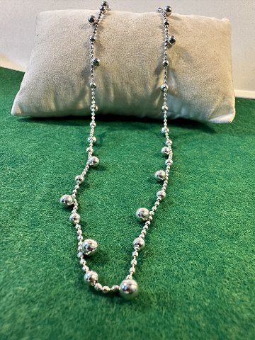 Sølvkuglens Dans er ikke bare en halskæde – hun er en fortælling om tidløs skønhed. Bestående af blanke, sølvfarvede kugler i forskellige størrelser, placeret med ynde langs en fin kæde, bærer hun både minimalismens charme og det legende spil i designet. Hver kugle er som en lille drøm, fanget i metal, og tilsammen skaber de et harmonisk rytmisk mønster – som musik, man kan bære.