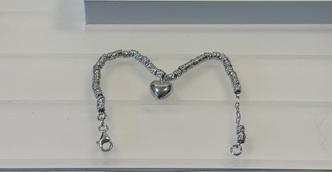 Længde 18 cm armbånd har sølv hjertet i midten og sølv kugler hele rundt .